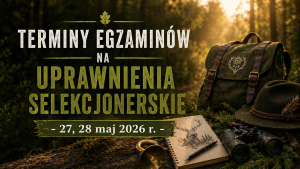 TERMINY EGZAMINÓW NA UPRAWNIENIA SELEKCJONERSKIE – 27, 28 maj 2026 r. – 27.05.2026 r. (środa) godz. 9:00 28 kwietnia 2026