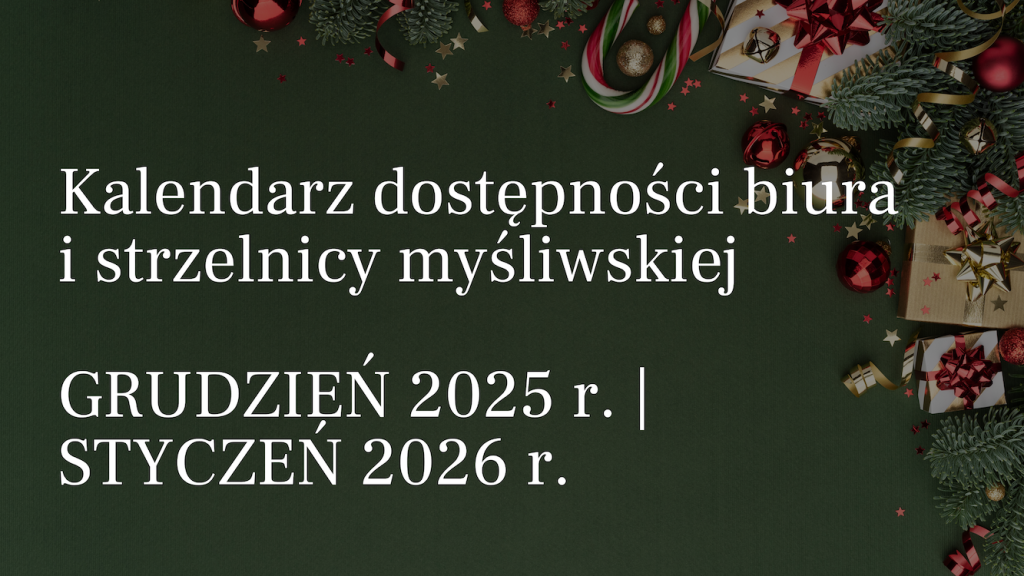 30 grudzień 2025 r. – Biuro czynne w godz. 7:00 – 15:00 / Strzelnica w godz. 8:00 – 16:00
